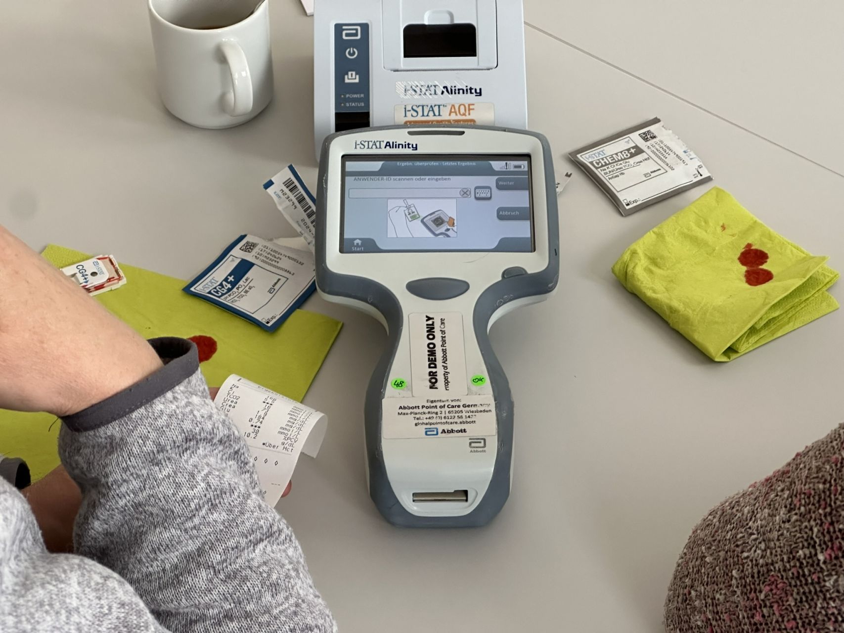 - Umgang mit modernen Point-of-care Laborgeräten (pocH-100i, Piccolo Xpress, i-STAT Alinity)