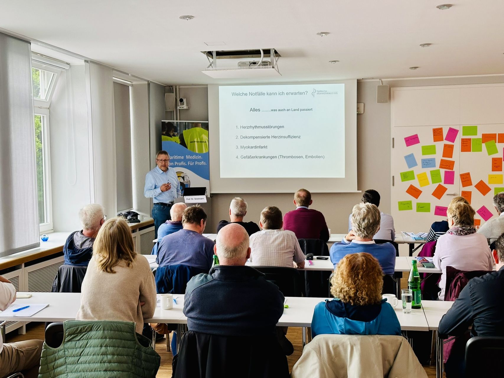 Außerklinische Intensiv- und Notfallmedizin! Wo gibt es denn sowas? An Bord von Schiffen zum Beispiel. Hier finden Sie Eingriffsräume und Intensivzimmer mit einem Gerätepark, der eine kurzzeitige intensivmedizinische Versorgung erlaubt, auch wenn Ihnen nicht die volle Leistung einer modernen Intensivstation zur Verfügung steht. Der fünftägige Lehrgang vermittelt Themen der intensivmedizinischen Grundversorgung, sowie der Notfallversorgung mit eingeschränkten Möglichkeiten. Im "Professional Course" geht um zentrale Aspekte wie Anästhesie und Analgesie, Intensivpflege, Umgang mit Laborgeräten und Interpretation von Laborwerten, aber auch um modernes Antibiotikamanagement, medikamentöse Wechselwirkungen, Nephrologie etc. Die Teilnehmerinnen und Teilnehmer erhalten Geräteeinweisungen auf verschiedene an Bord befindliche Geräte und können in verschiedenen praktischen Workshops unter anderem Rettungstechniken, das Legen von Thoraxdrainagen, sowie von transurethralen und suprapubischen Kathetern üben.